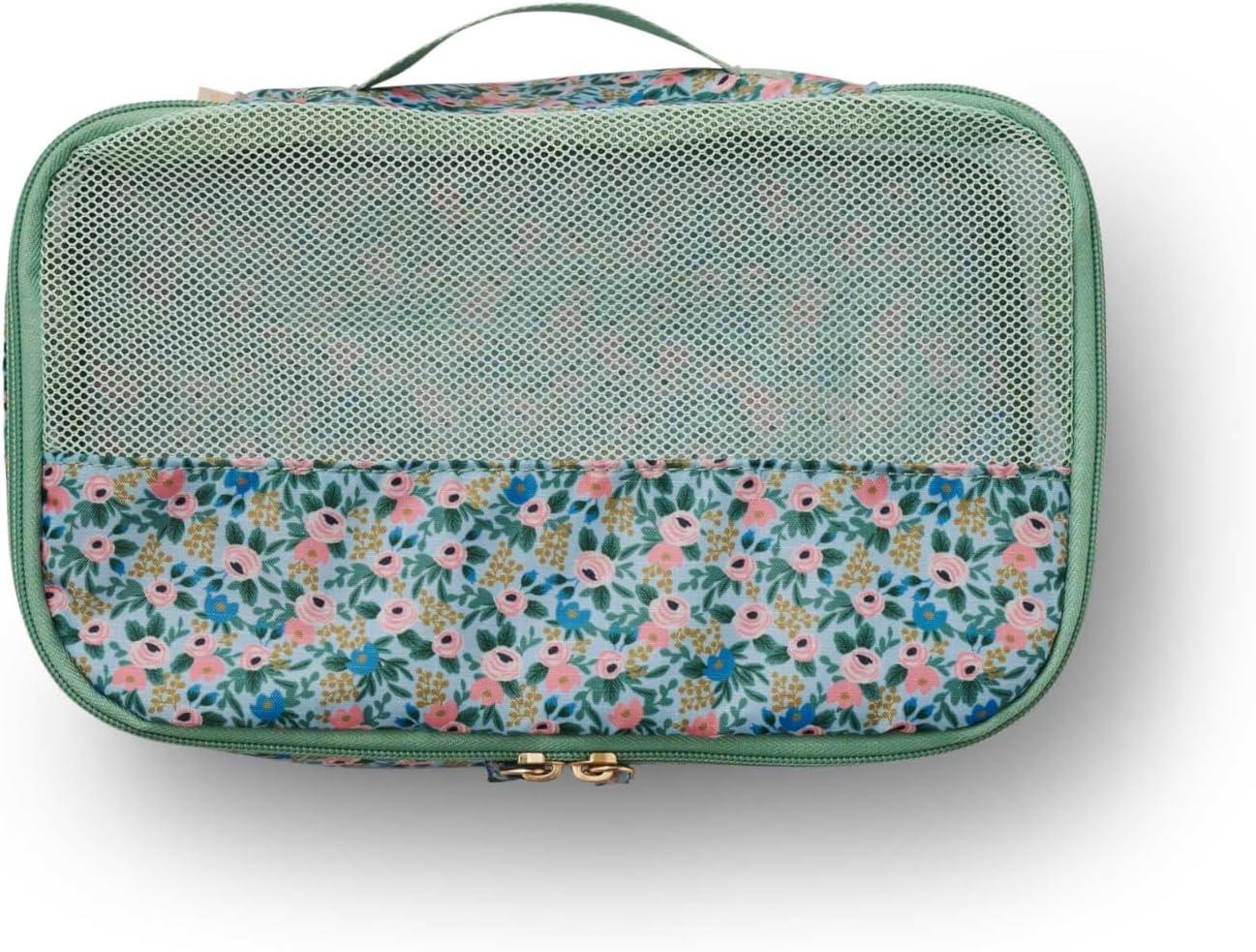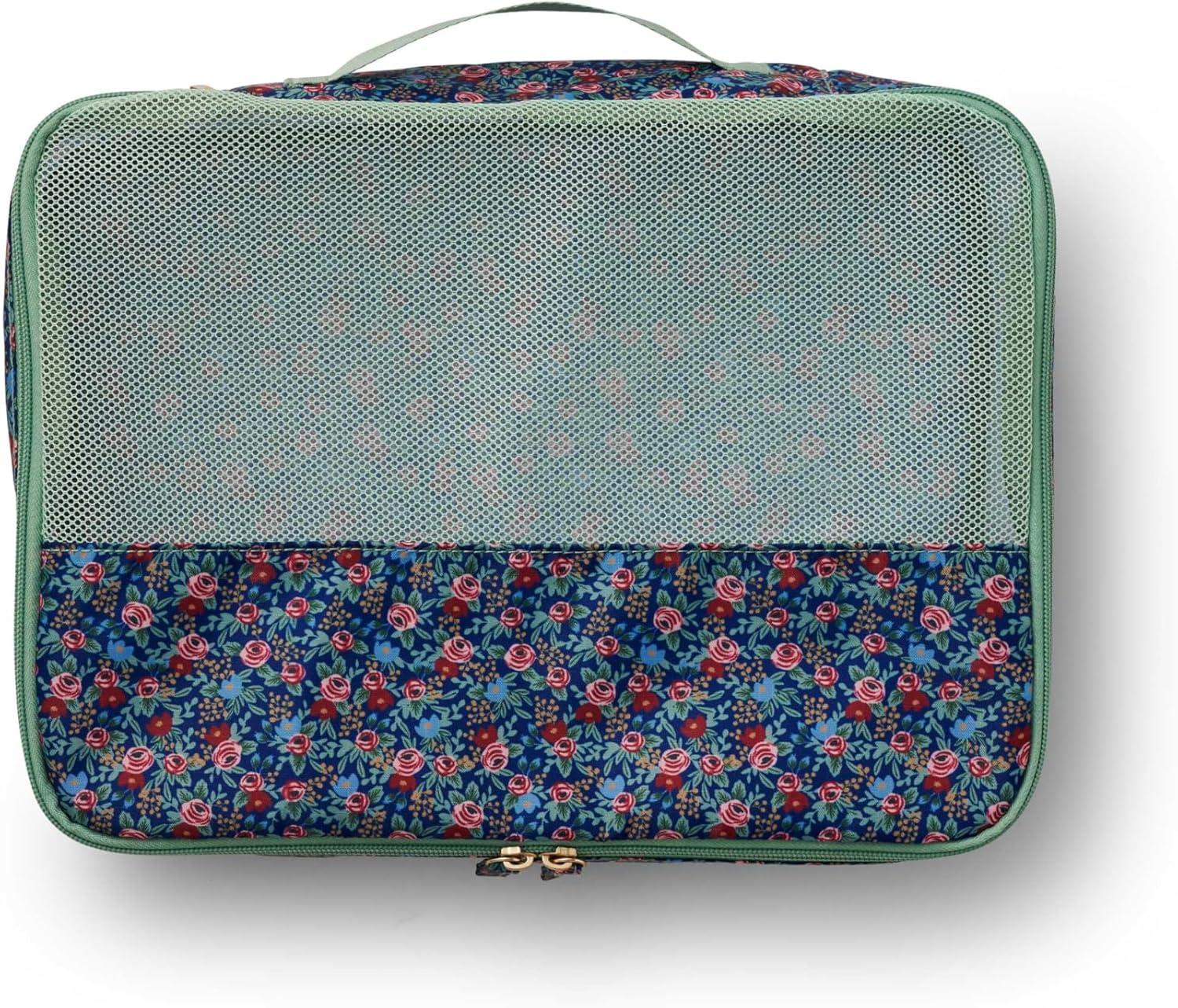 RIFLE PAPER CO. Soft Sided Packing Cubes Set of 3. Includes Small, Medium, Large and a Laundry Bag, Travel Must Have Accessory, Stylized Pattern, Floral Rosa(Peacock)
