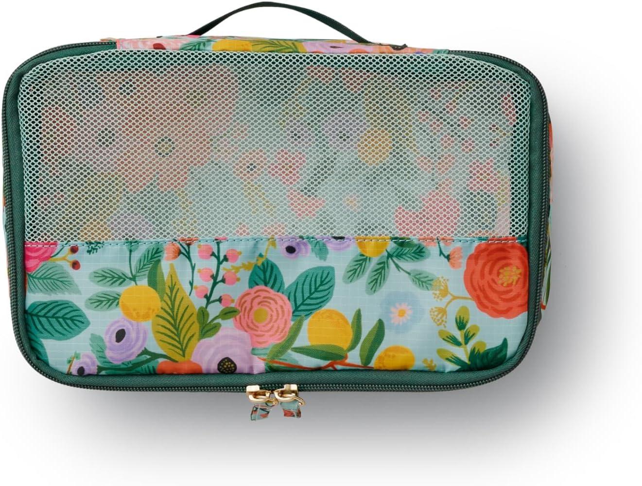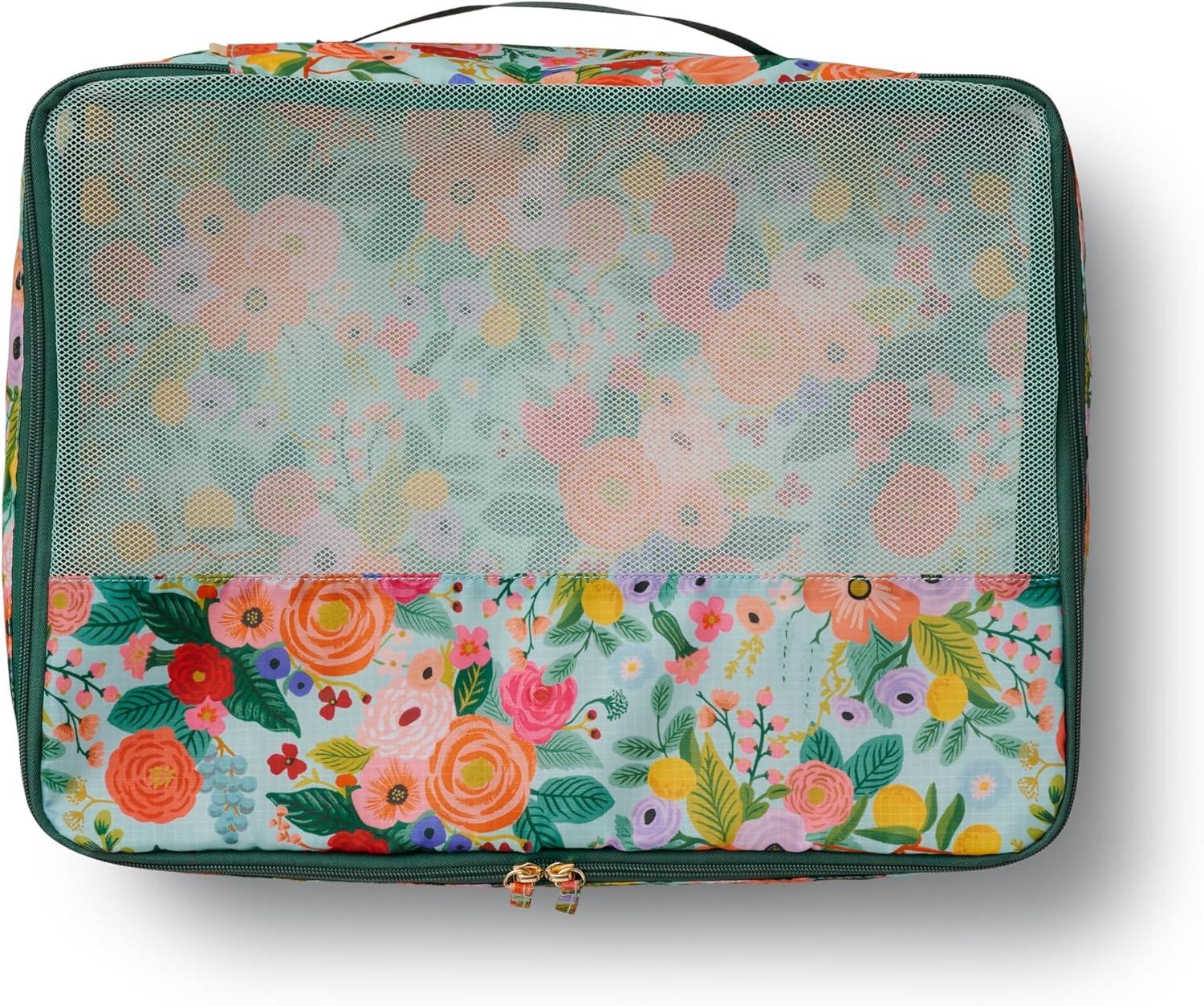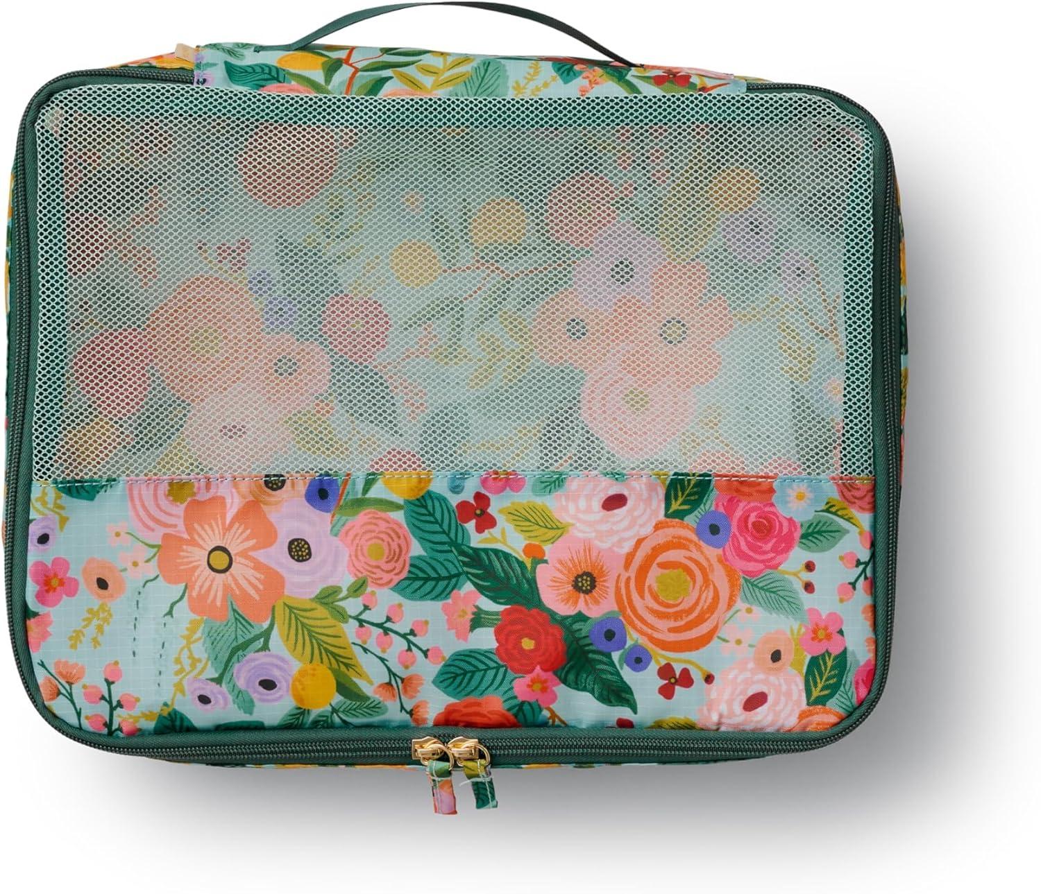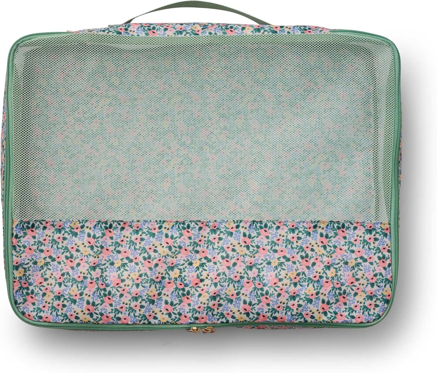 RIFLE PAPER CO. Soft Sided Packing Cubes Set of 3. Includes Small, Medium, Large and a Laundry Bag, Travel Must Have Accessory, Stylized Pattern, Floral Rosa(Garden Party)