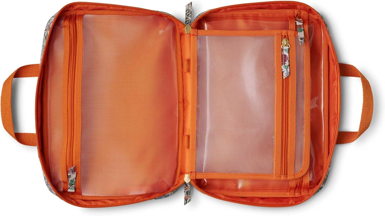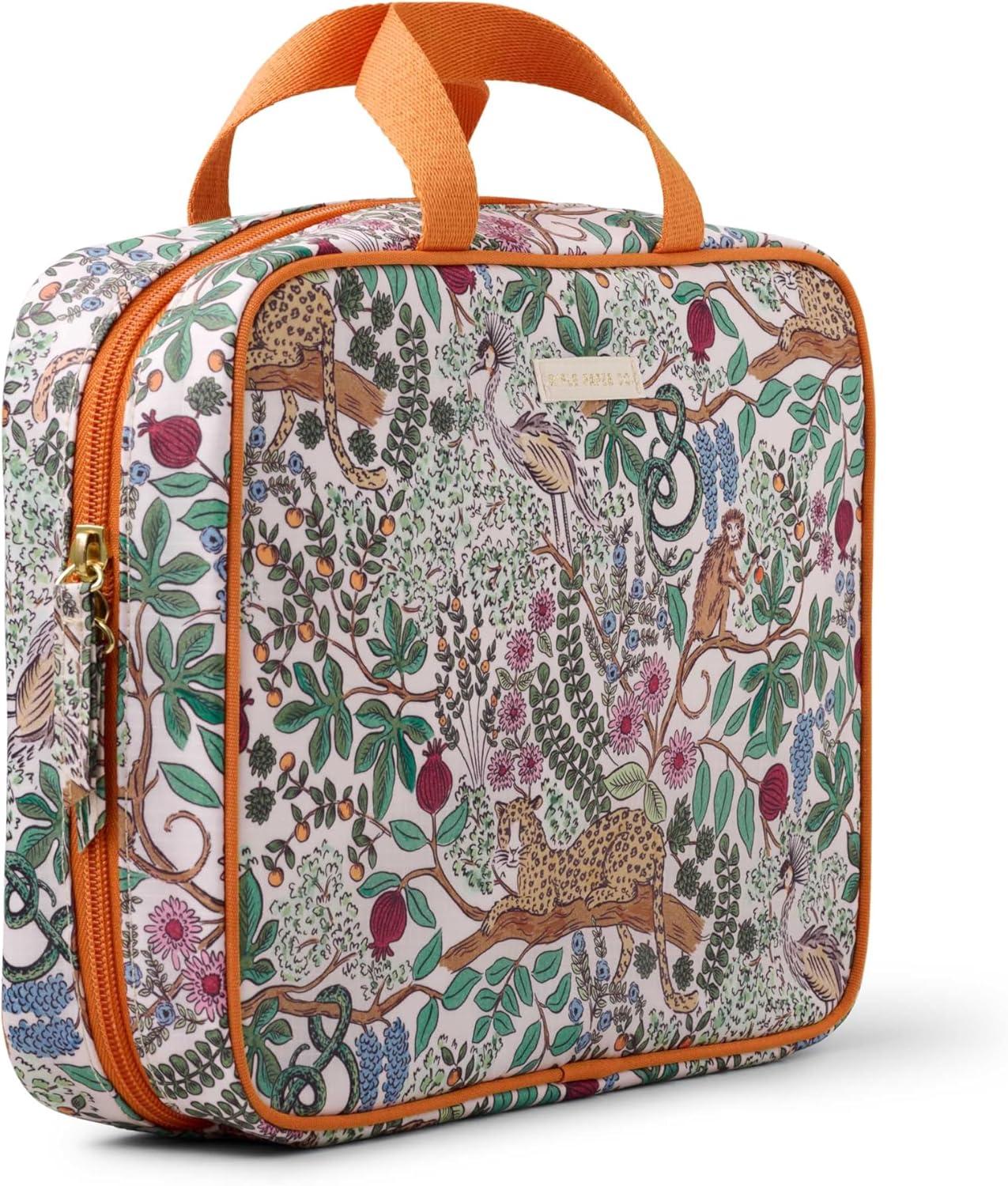 RIFLE PAPER CO. Travel Toiletry and Cosmetic Case | Multi Pocket Makeup Organizer Bag, Zipper Closure, Removable Clear Pouch, Lay Flat Design | Peacock Pattern(Safari)