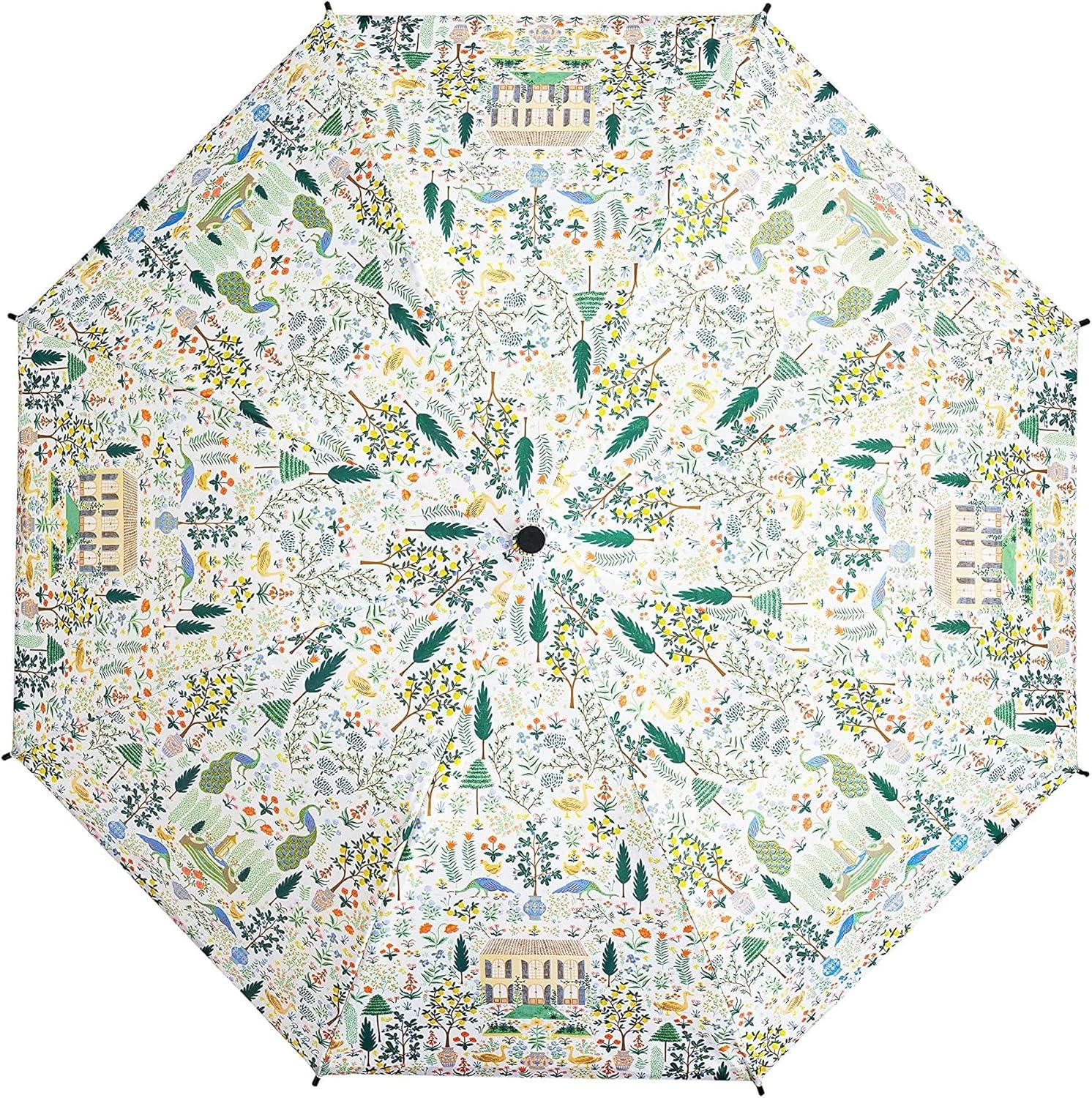 RIFLE PAPER CO. Umbrella, Matching Storage Sleeve, Portable, Auto Open and Close, Wooden Handle, Printed in Full Color(Camont)